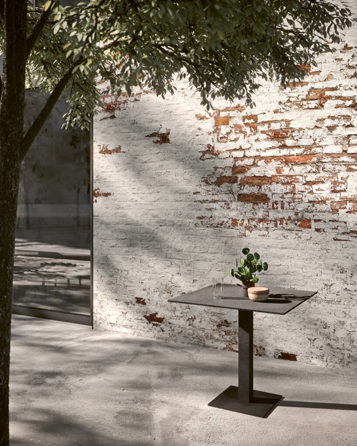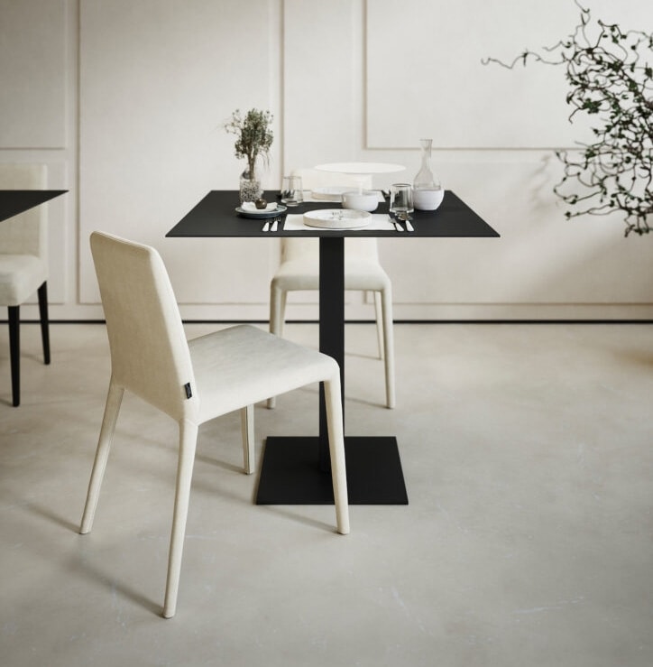 La mesa Bistro es un equilibrio perfecto entre ligereza, resistencia y funcionalidad.