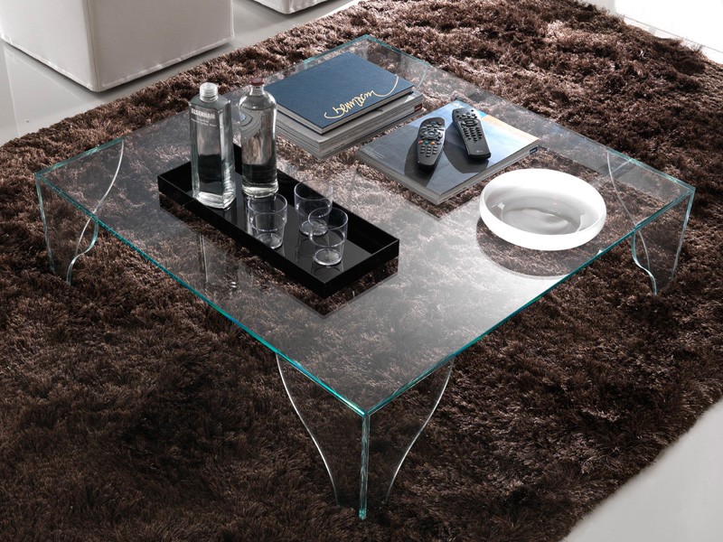 Mesa de café con el gato transparente ultraligera. "P" 10 mm de espesor de vidrio templado plano. Ultraligera transparente pegadas las piernas de cristal.