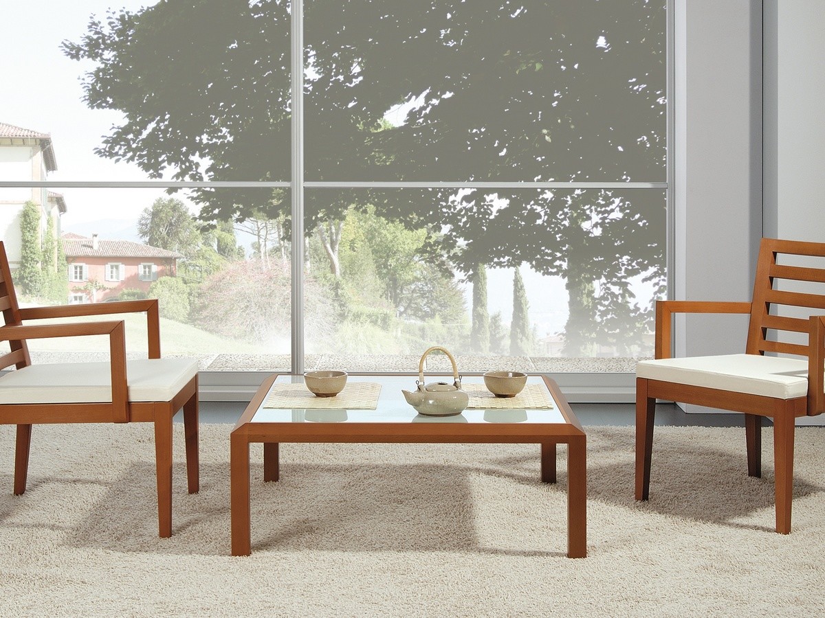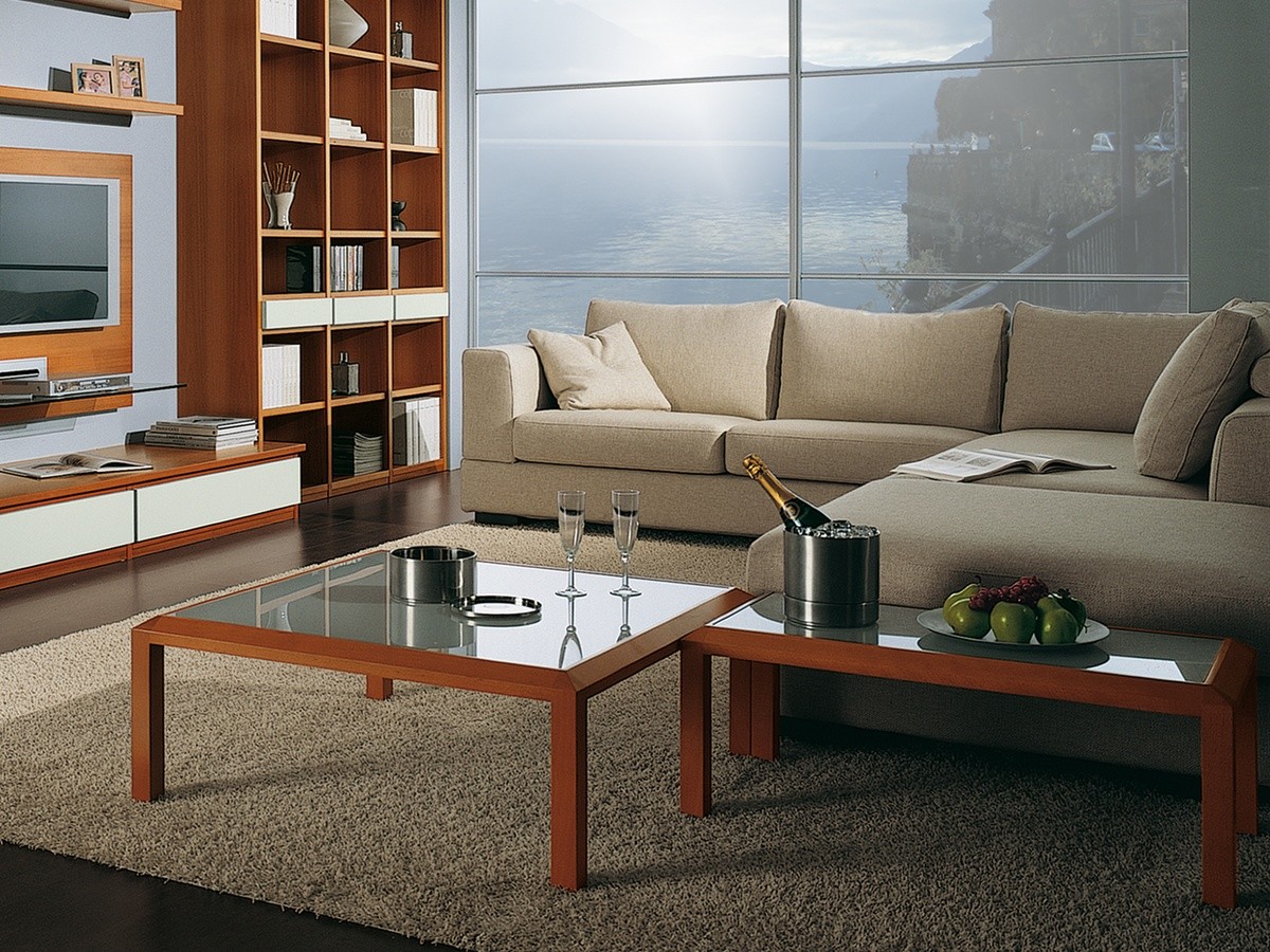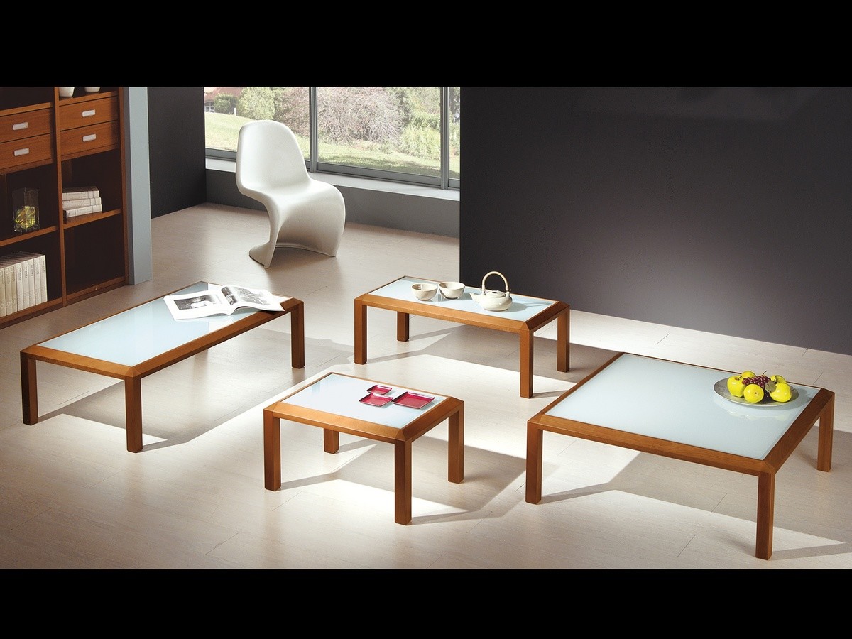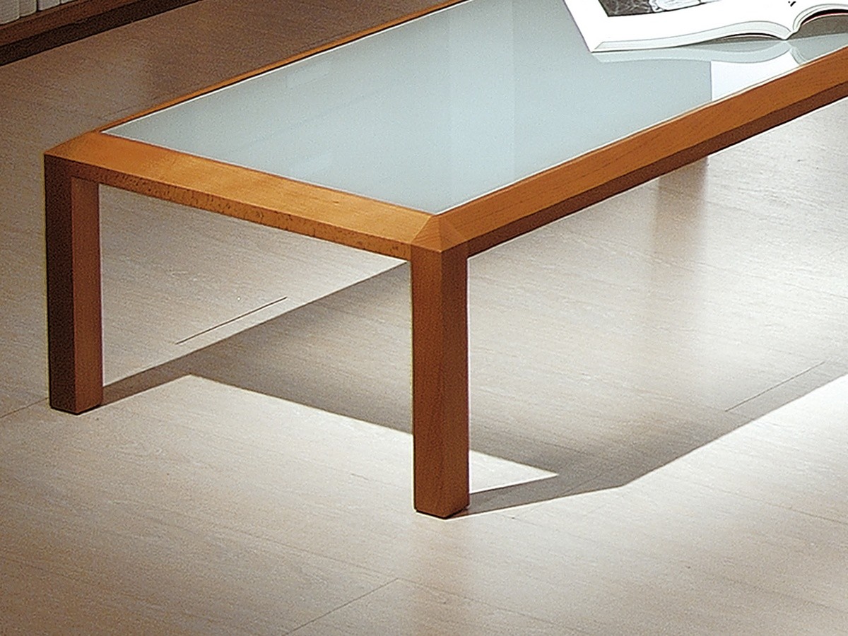 Mesa de centro en madera y vidrio, para el pasillo del centro