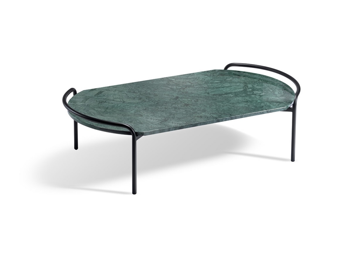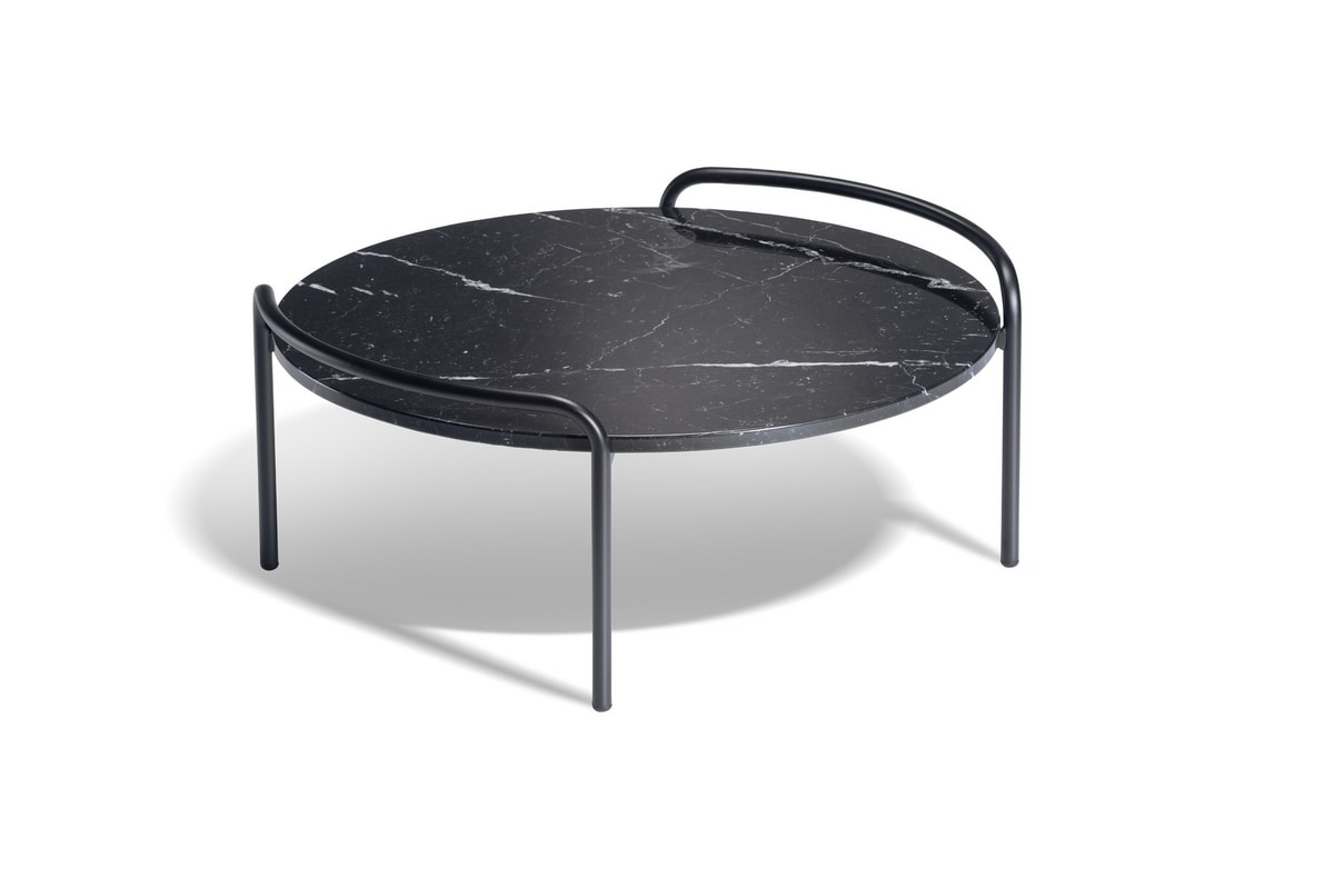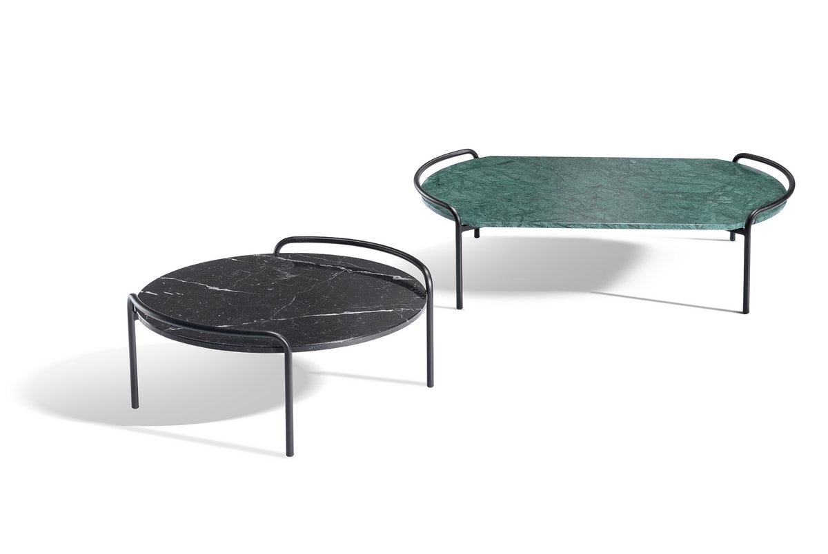 Mesa auxiliar de metal con sobre rectangular o redondo de mármol