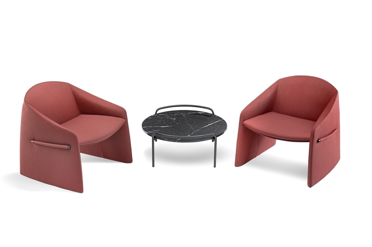 La colección Pompon une diseño refinado y funcionalidad, haciéndola perfecta para las áreas de espera. El marco de metal con 4 patas se caracteriza por prácticas "manijas" integradas, que hacen que los desplazamientos sean más simples y cómodos. Los tableros de mármol, disponibles en variantes redonda y rectangular, añaden un toque de prestigio, creando un equilibrio perfecto entre estética y practicidad.