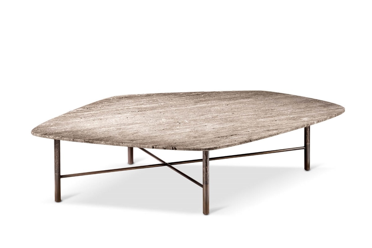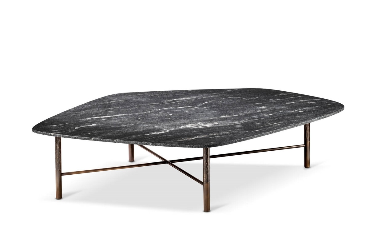 Mesa de centro Shanghai en hierro con superficie de piedra, mármol o madera.