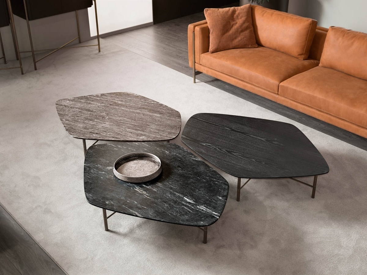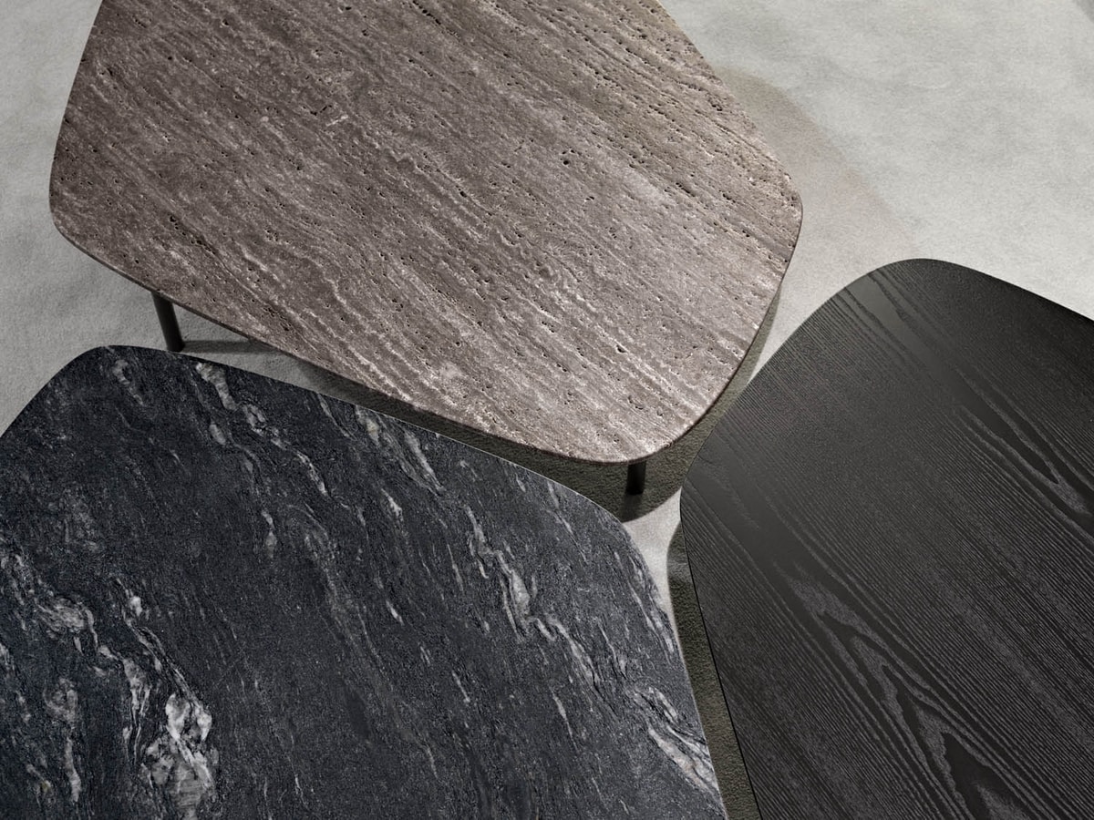 La estructura es de hierro forjado completo y la parte superior está disponible en piedra, mármol, fresno negro o en otros tipos de madera. En combinación con otras mesas en diferentes materiales, puede crear un contraste llamativo en su sala de estar. La mesa de Shanghai, sola o en combinación con otras, se puede colocar en cualquier entorno extremadamente refinado, para una sala de estar con un diseño sofisticado.