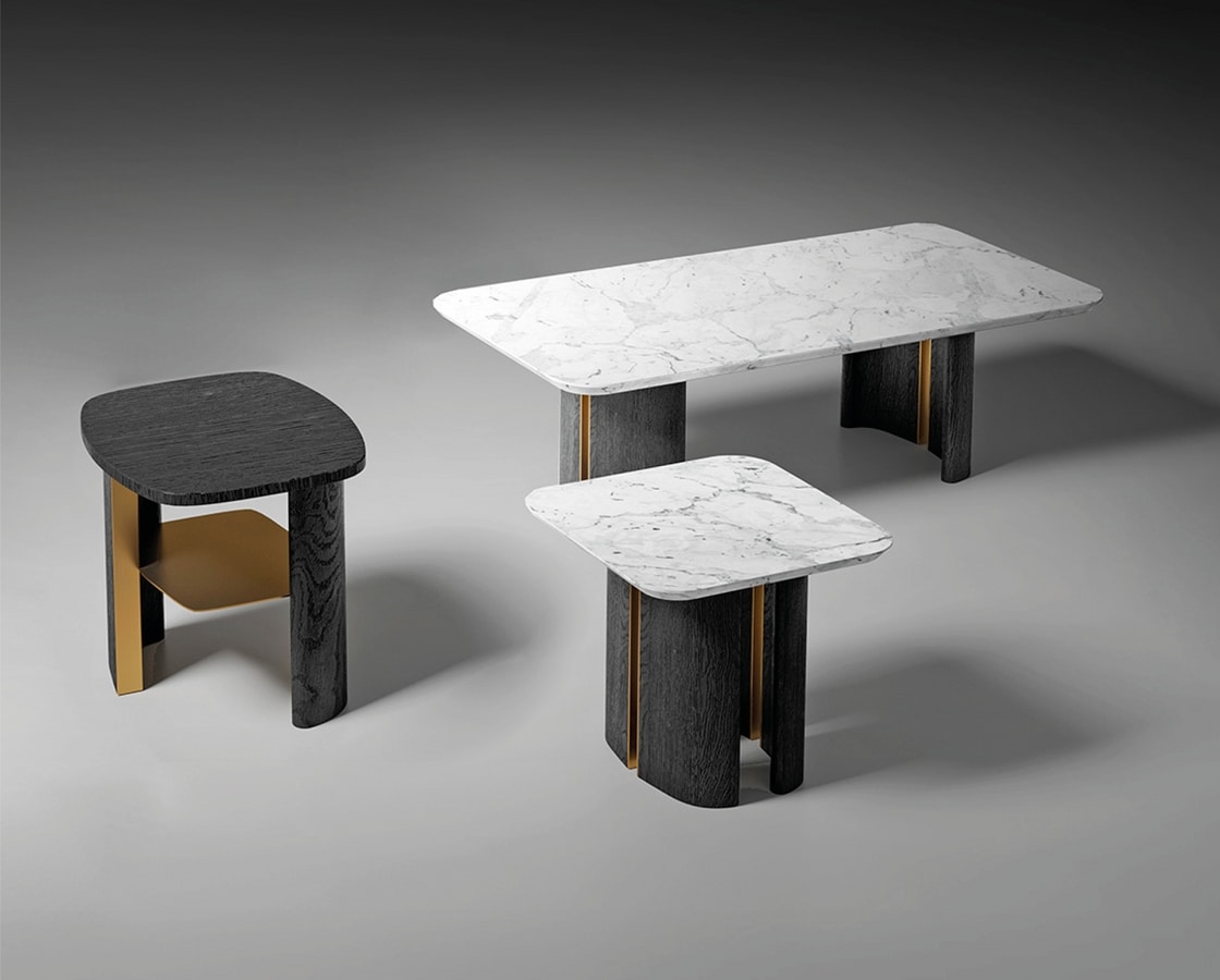 De hecho, la colección Torii está disponible en varias alturas estándar (p. ej., 35 cm, 45 cm, 72 cm) y se puede personalizar haciendo que la misma forma de pata sea adecuada para: mesas de centro, bancos, escritorios, mesitas de noche y consolas de entrada.