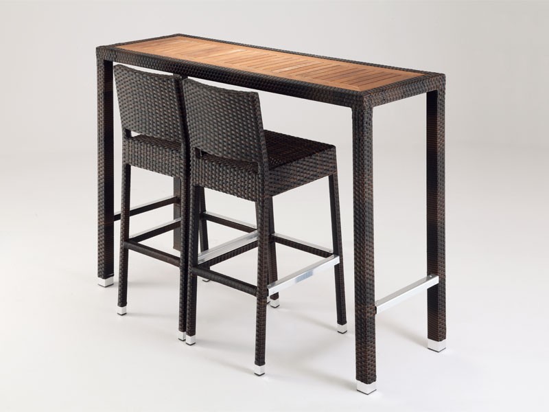 Mesa rectangular de aluminio de alta completamente tejido, con la parte superior de la teca. Esta mesa es ideal para environmetns al aire libre.