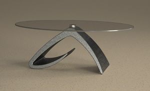 Mesa de centro con tapa de cristal unido mediante bridas