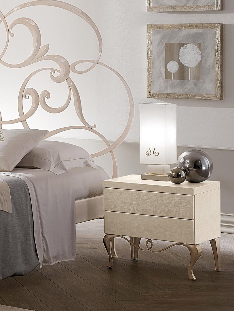 Mesita de noche con cortado con láser y una base sólida de hierro curvado, soldaduras continuas de alimentación de alambre hecho completamente a mano. cajones con sistema de cierre suave totalmente adaptable que se extiende.