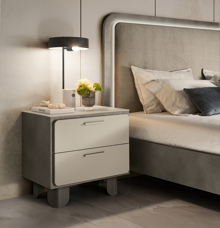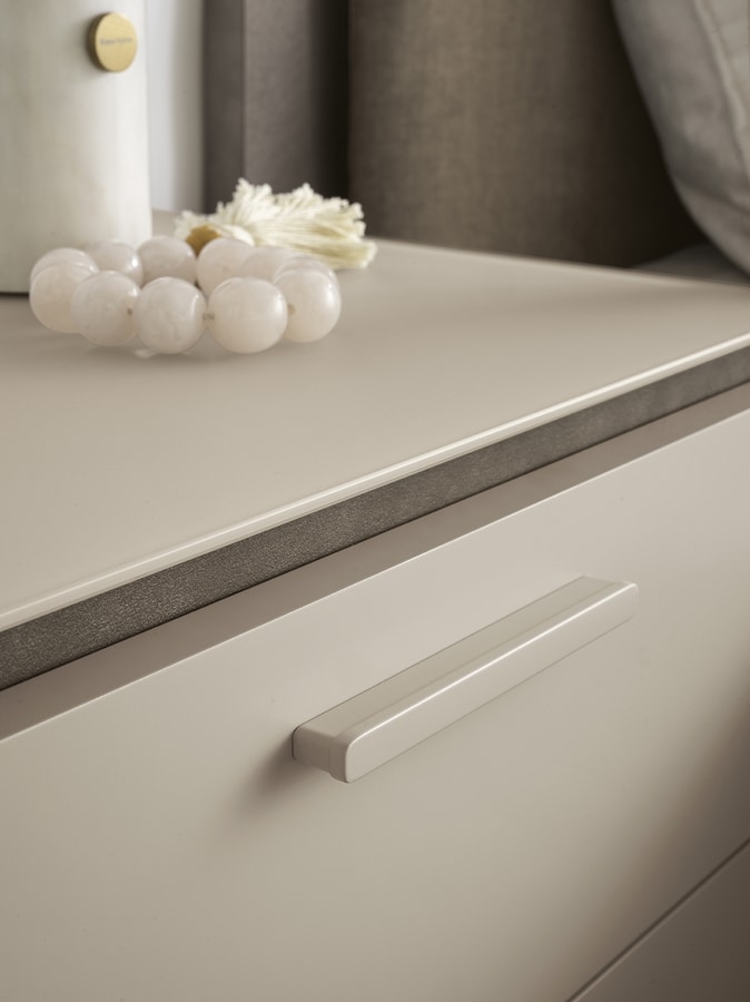 Solicitar precios Productos similaresEn la zona de noche, los detalles revelan el alma más íntima de la colección Perla: encimeras de cristal satinado y tiradores redondeados tono sobre tono crean una estética sobria y luminosa, definida por el equilibrio formal y la refinada continuidad estilística.