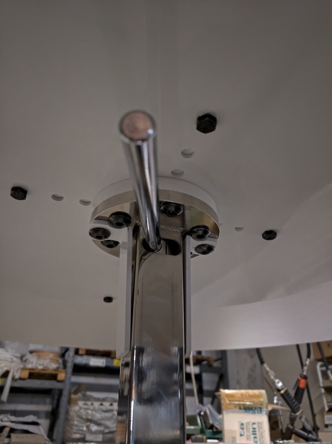 Mesa con columna redonda de metal regulable en altura
