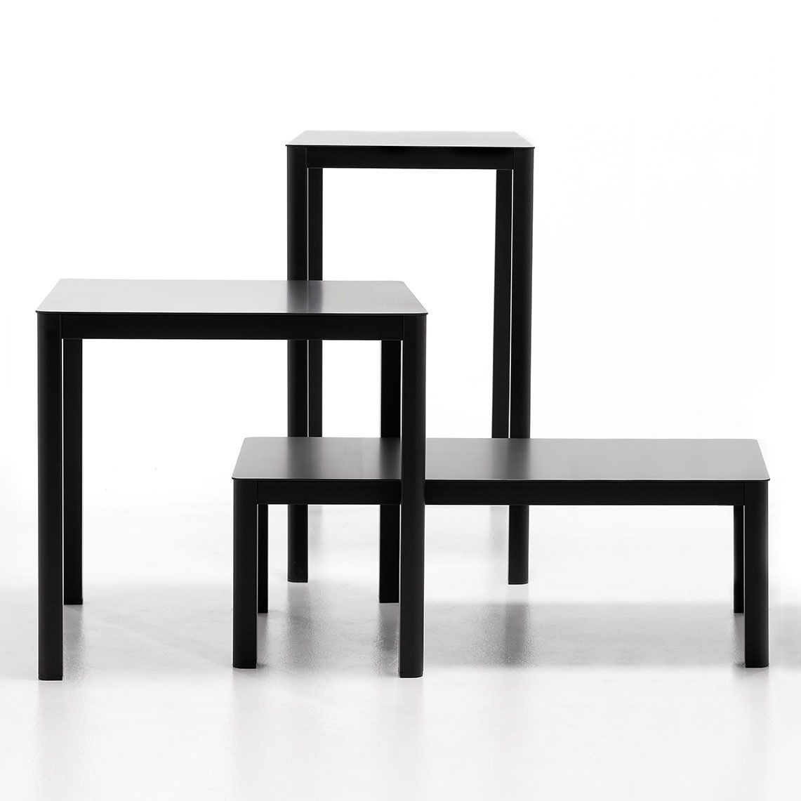 Mesita con estructura de acero pintado y HPL superior disponible en 60x60, 60x120 y 80x80 tamaños. LA es un sistema adecuado de concordancia y modulares mesas, hechas en diferentes alturas y tamaños para proporcionar la máxima flexibilidad para los diseñadores. Son robustos y ligero, apto para ser colocado en las áreas HoReCa, tanto dentro como fuera. Tablas de la colección de LA se caracterizan por un diseño esencial, suavizado por las esquinas biseladas de las patas de aluminio pintado y de la tabla HPL, siempre monocromo como su estructura.