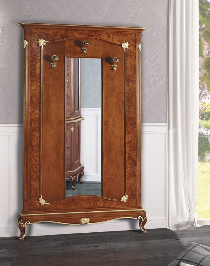 Perchas Art Deco para hall de entrada. En madera y equipado con espejo.