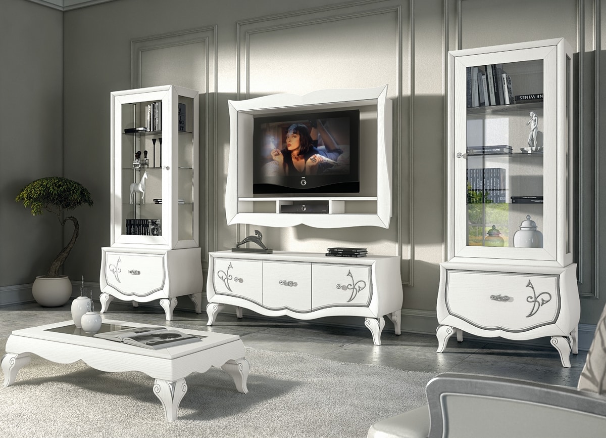 Mueble bajo de estilo barroco moderno, con marco de soporte de TV