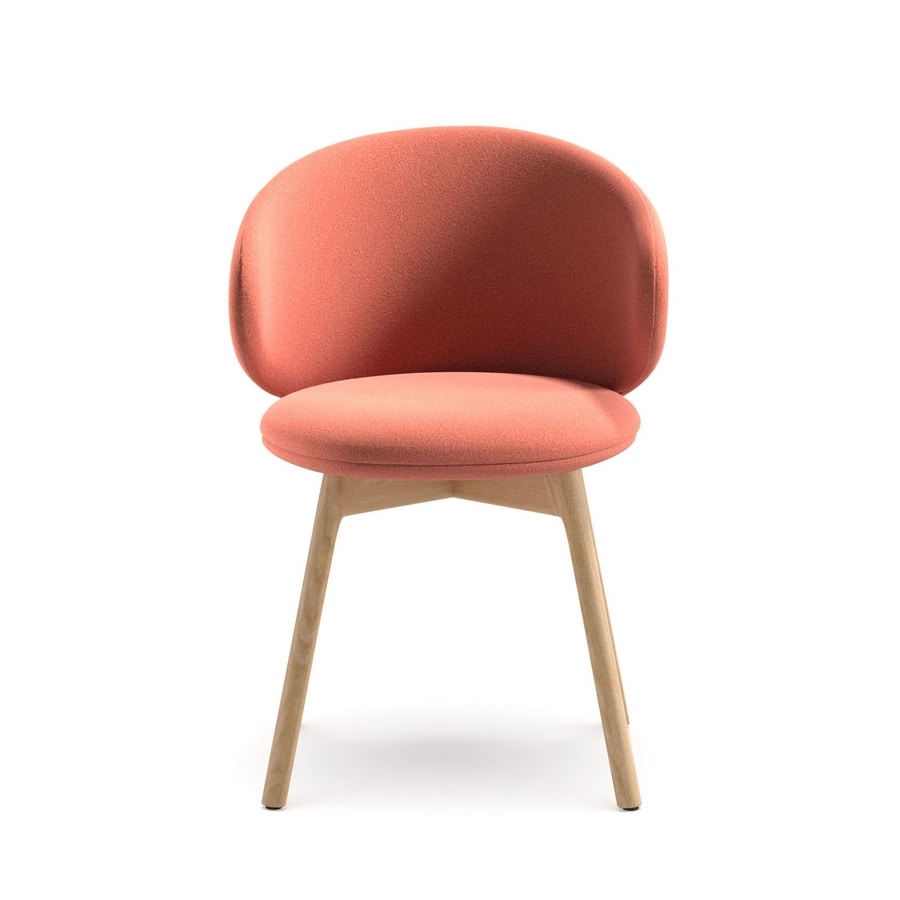 Belle es una colección de sillas y taburetes pensada para espacios contract. Cuenta con un asiento redondo y un respaldo curvo y envolvente que abraza el cuerpo. Completamente tapizada, Belle se personaliza a través de sus acabados y bases para adaptarse a diferentes ambientes, desde restaurantes y bares hasta lugares de trabajo. La versión silla está disponible con cuatro patas de madera o de metal, patín o base giratoria con ruedas y caballete; el taburete con patas de metal, columna central con soporte regulable o base giratoria de caballete de madera.