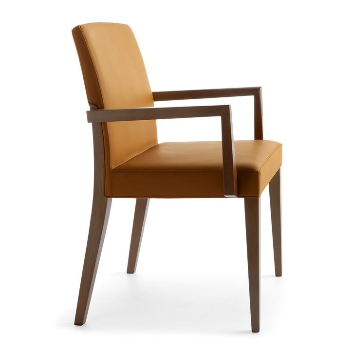 Sillón, marco de madera maciza. Fuera de vuelta en la madera contrachapada. Asiento y respaldo tapizados con detalles de tuberías en la parte inferior del asiento y el respaldo.