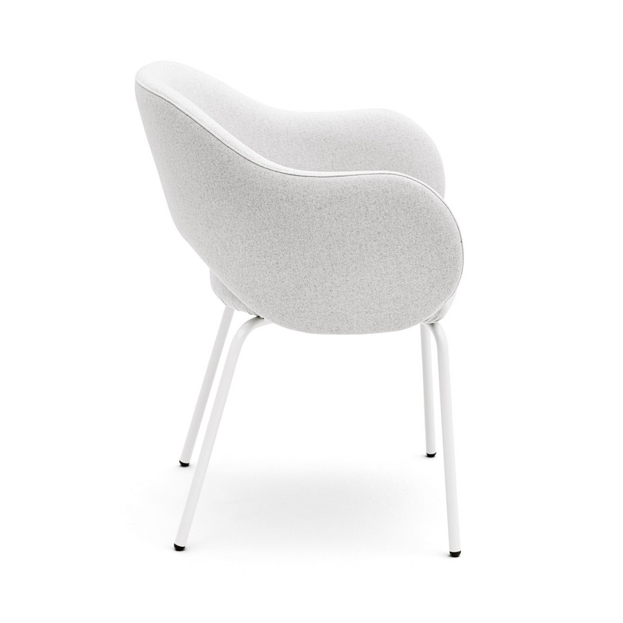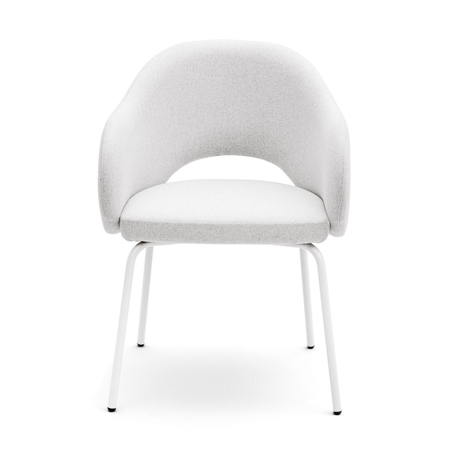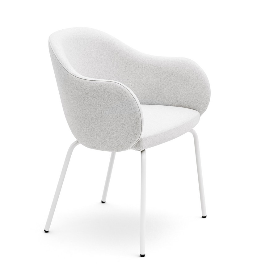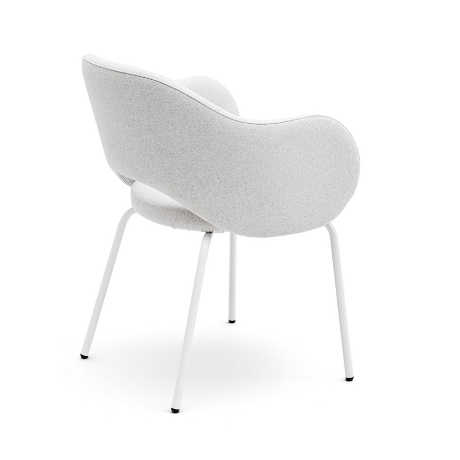 Sillón con abertura entre el respaldo y el asiento. Marco de madera contrachapada acolchado y tapizado. Asiento web para Omfort óptimo. Patas de metal pintadas.