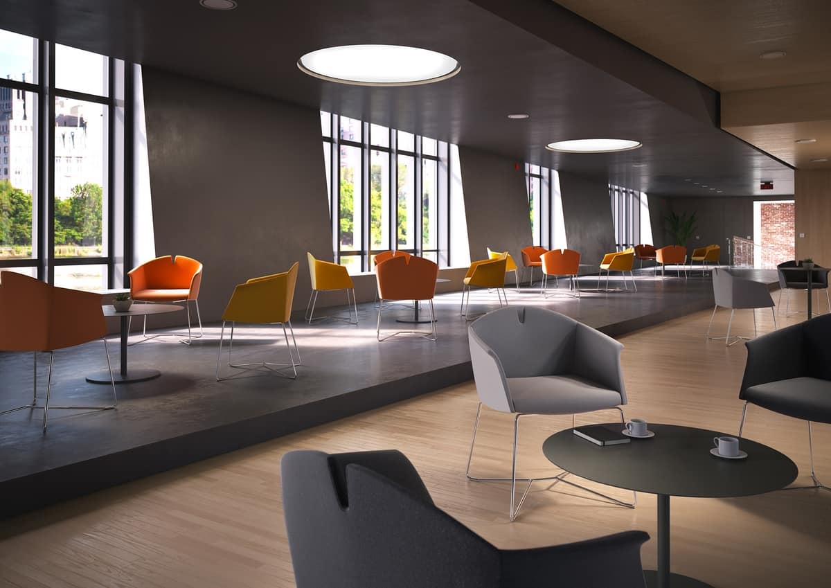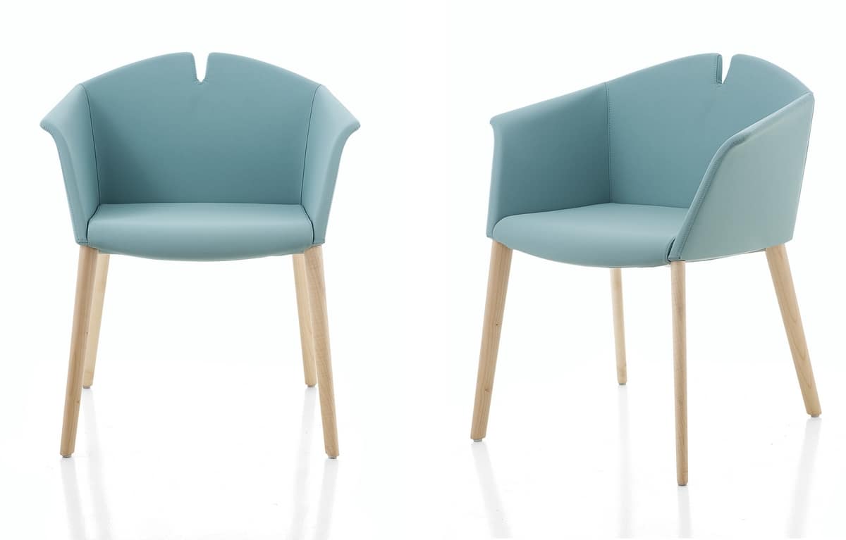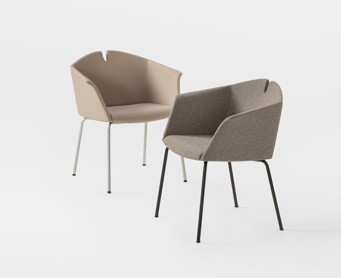 Sillón para zonas de espera y reunión con resplado flexible en la parte superior. Varias soluciones y acabados de las estructuras fijas y giratorias.