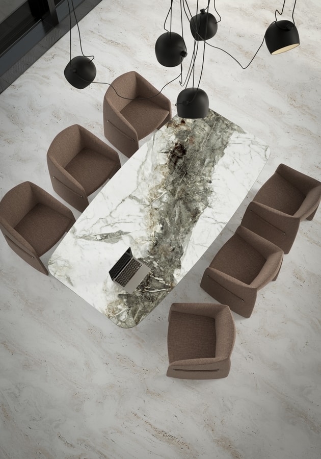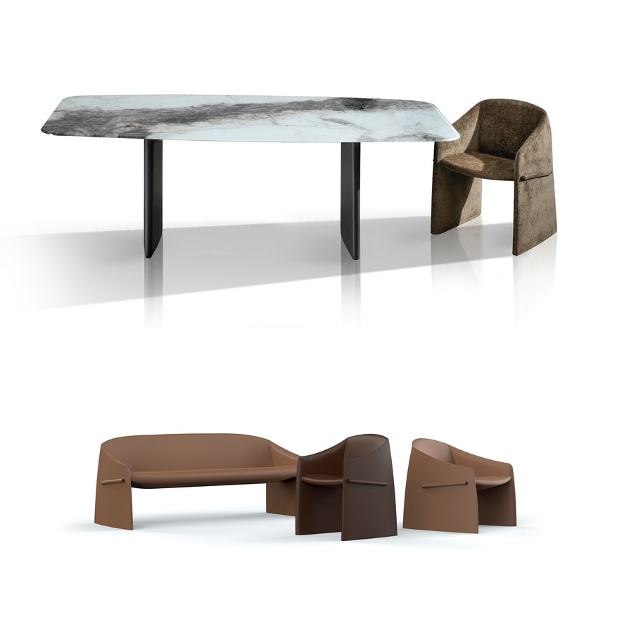 Majorette es una colección compuesta por sillón, poltrona y sofá de 3 plazas, cuyo detalle distintivo es el perfil lateral en material plástico recubierto con tejido, que atraviesa el reposabrazos como un gesto gráfico. Este elemento característico da carácter al sillón, rompiendo la continuidad del tapizado con una solución inesperada pero perfectamente equilibrada. Las geometrías que componen esta colección son compactas, elegantes y esculturales a la vez. Sus líneas fluidas y la forma acogedora crean un volumen continuo, completamente tapizado en tejido o cuero, pensado para integrarse armoniosamente en ambientes contract y domésticos.