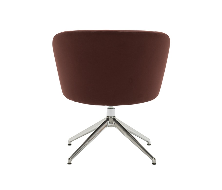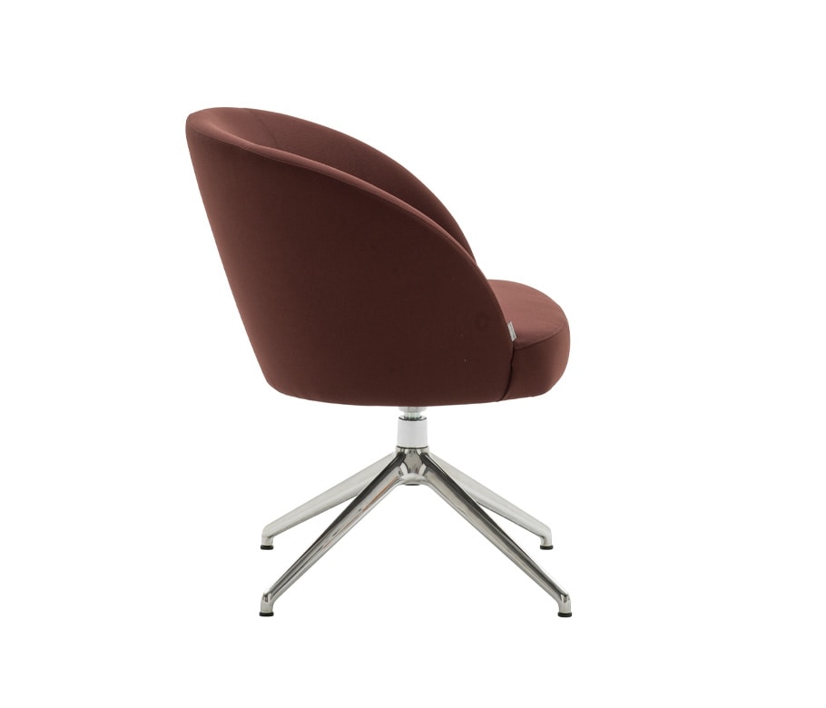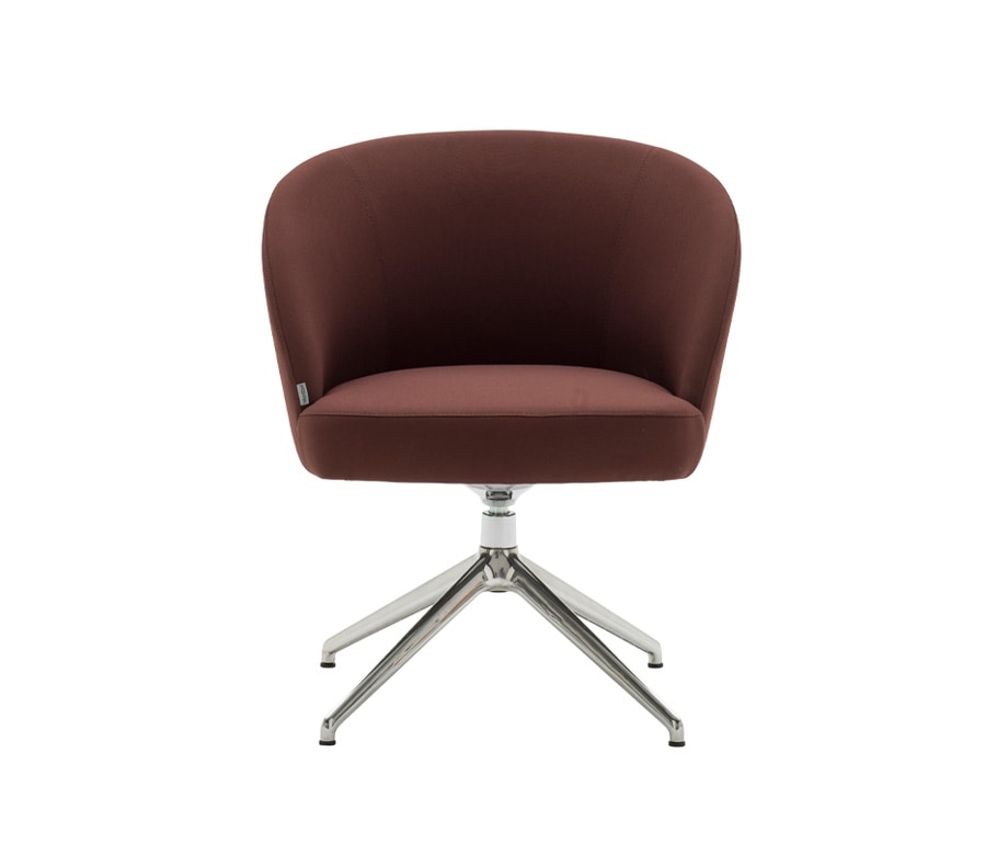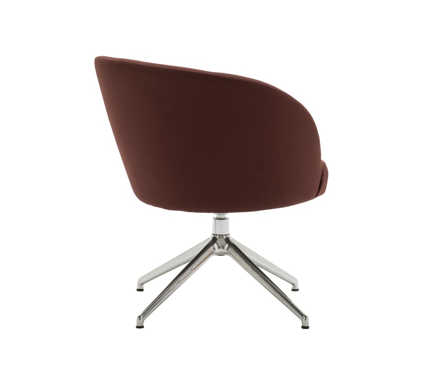 Sillón grande con carcasa de espuma moldeada. Tapizado en el marco. Asiento palmeado. Con base giratoria de aluminio de 4 radios.