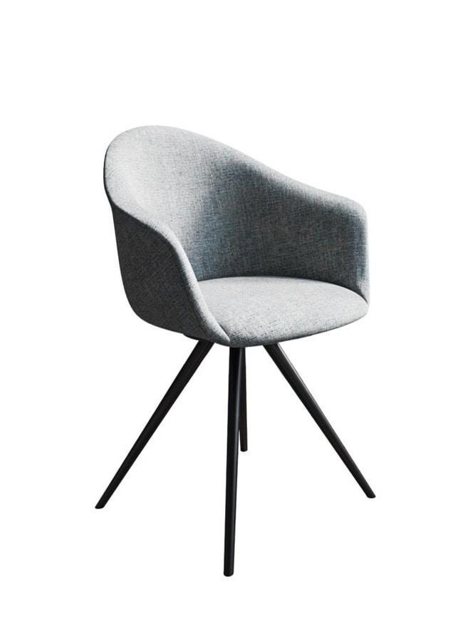 Un sillón un poco silla, con asiento, brazos y respaldo en poliuretano expandido, tapizado con acolchado de goma y cubierto de tejido.