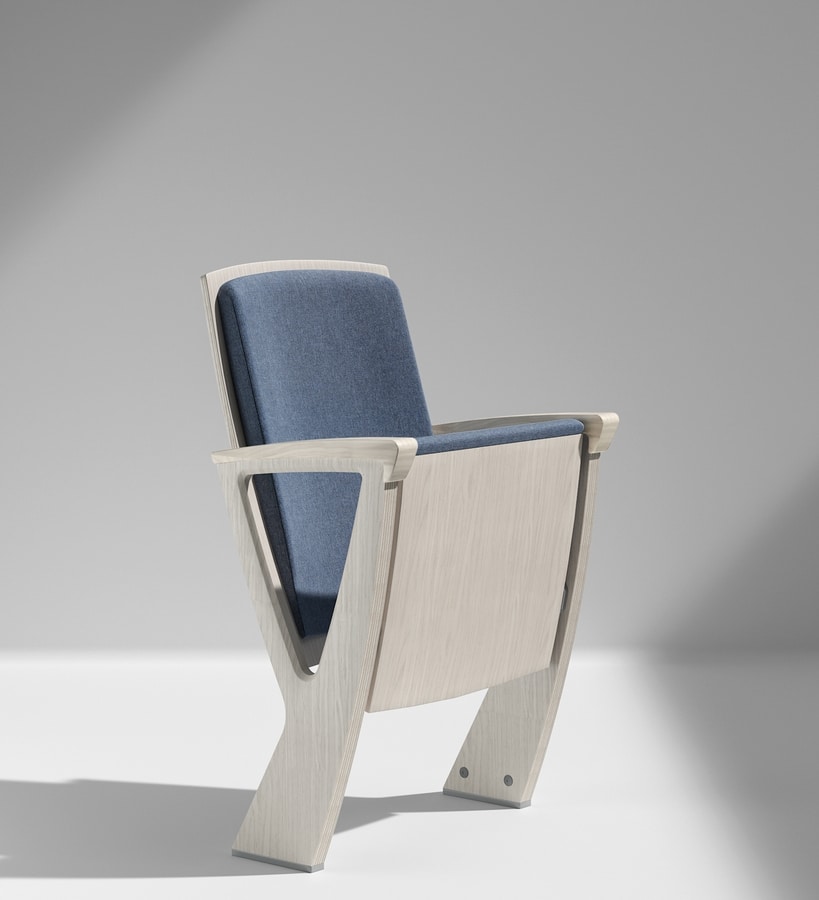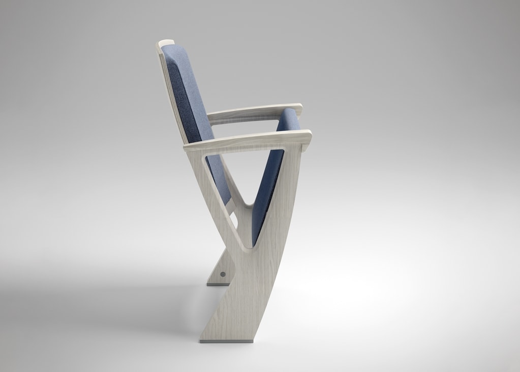 Una silla de teatro, con líneas esenciales y un lado que recuerda la forma de un diapasón ("diapasón" en italiano) o una "Y" como su nombre, tiene la característica especial de ser de tamaño compacto. La elegancia y la compacidad se destacan aún más cuando el asiento abatible está completamente cerrado y se adapta perfectamente a los lados sin proyectar, manteniendo su forma elegante. Se presenta en acabados que permiten infinitas combinaciones, experimentando con finos acabados de madera y tapizados.