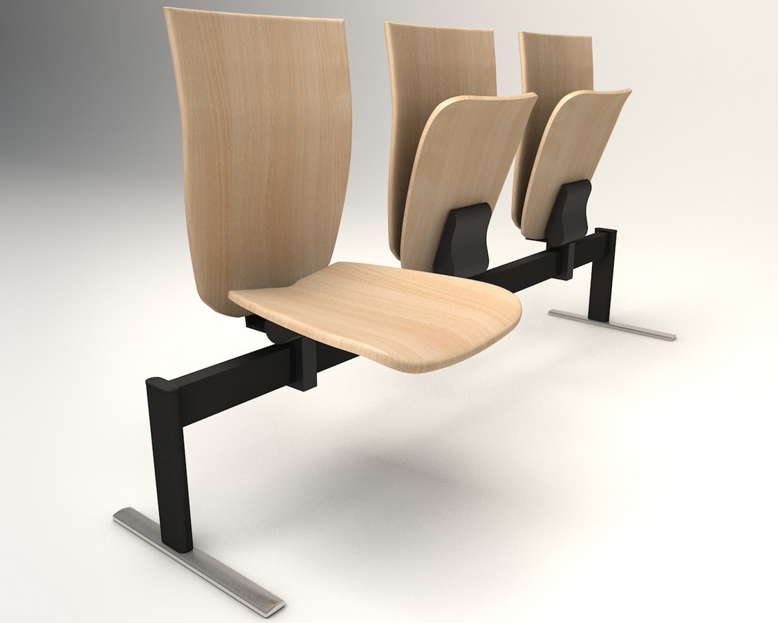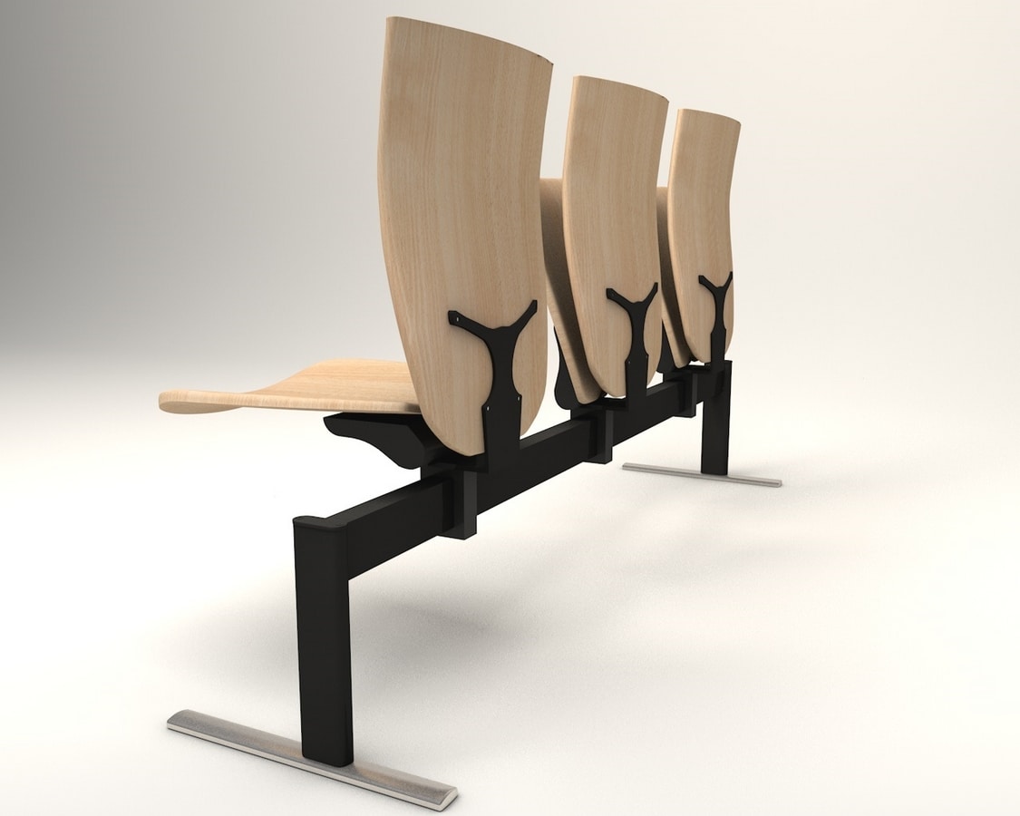 Asiento con viga abatible con asiento y respaldo de contrachapado de haya.