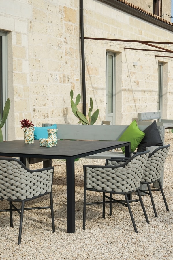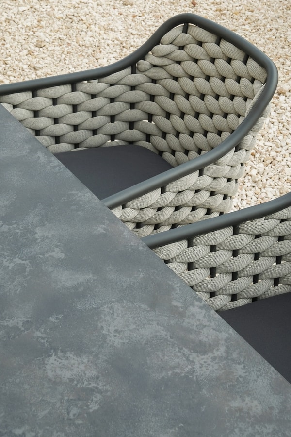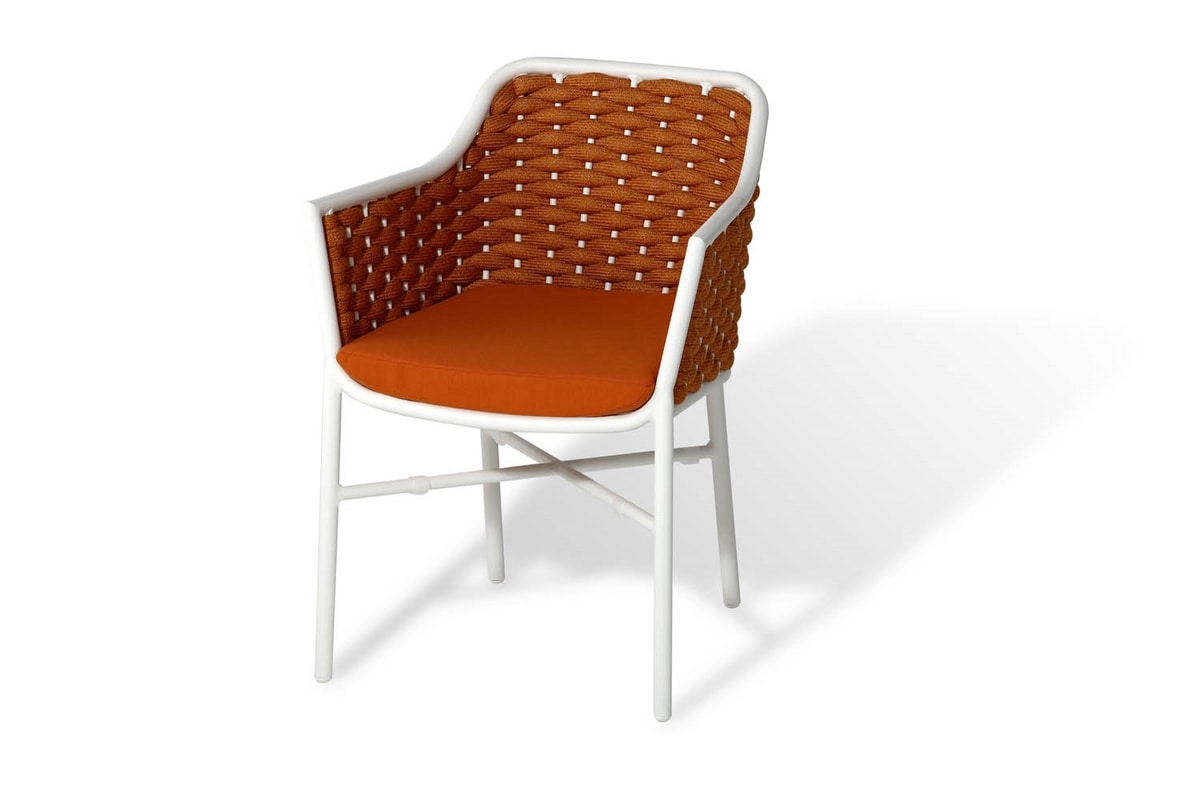 El diálogo entre el cordón tejido y el marco es el elemento distintivo de esta familia de muebles. Líneas y volúmenes que se unen para ofrecer el mayor confort.