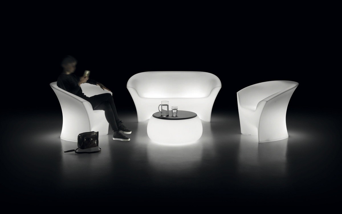 Sillón de policarbonato, con la luz interna, para la barra al aire libre