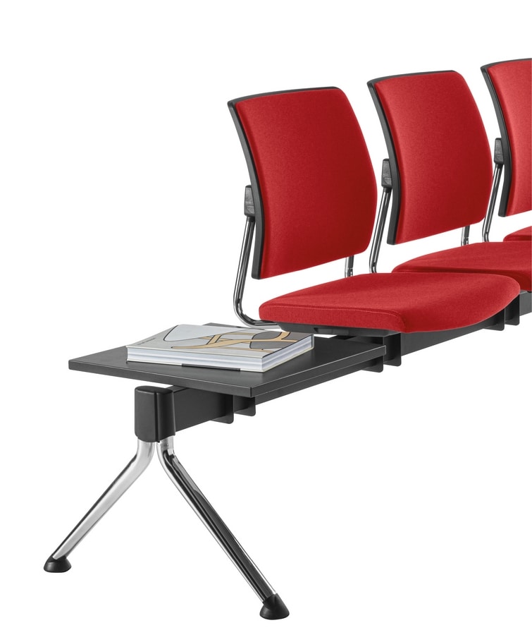 Serie con asiento y respaldo separados. Modelos de 4 patas o patín apilables, con o sin brazos, o con pala de escritura, en versión giratoria o sobre viga. Respaldo tamaño XL.