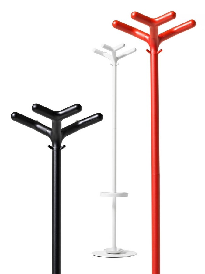 Gama de percheros con estructura en metal barnizado con pintura epoxi, ideal para todos los públicos. El otro perchero tiene una base circular con paragüero y nueve enganches.