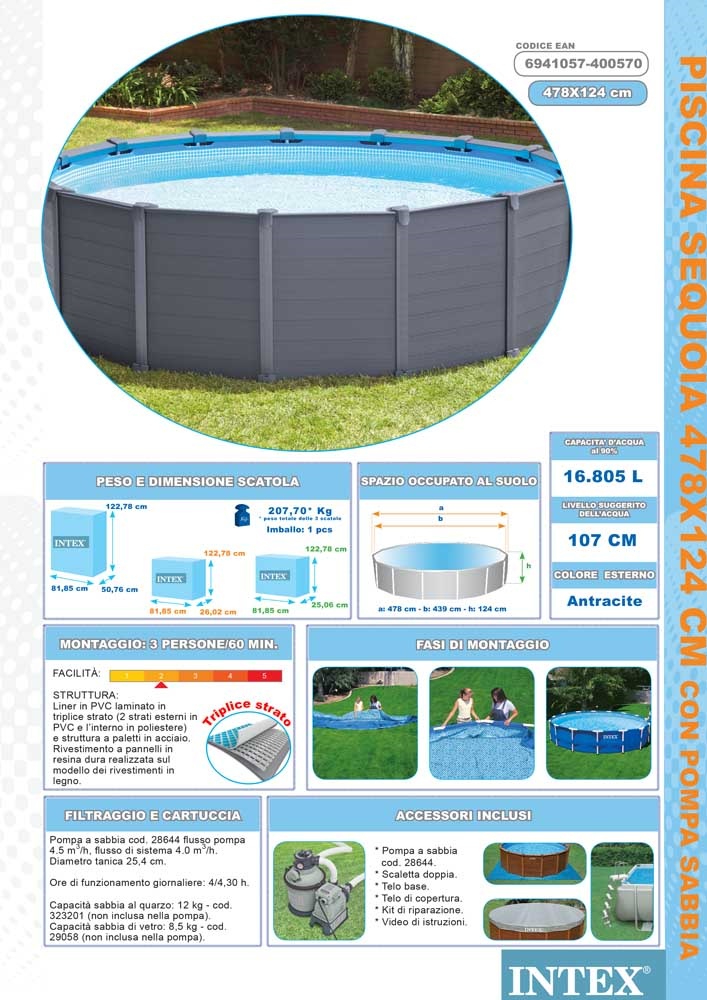 Dimensiones de la piscina: Diámetro 478 cm x 124 cm de altura
