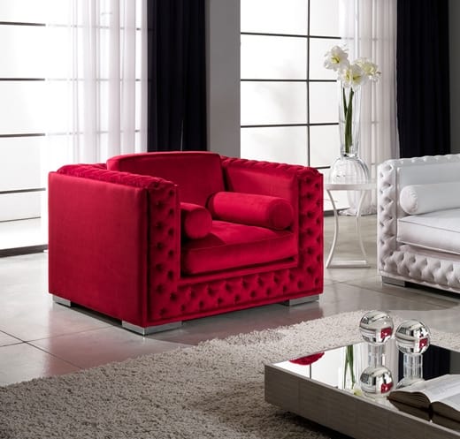 Lujoso sillón con relleno acolchado en el que puedes insertar cristales de Swarovsky. Disponible en diferentes telas.