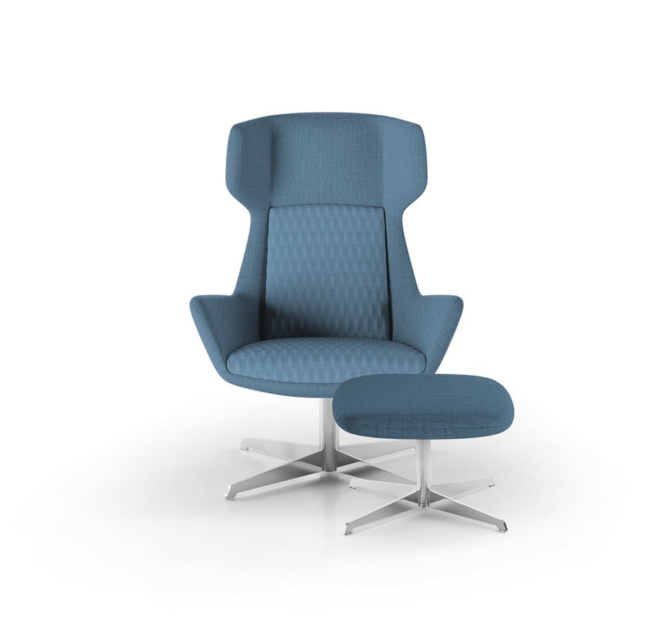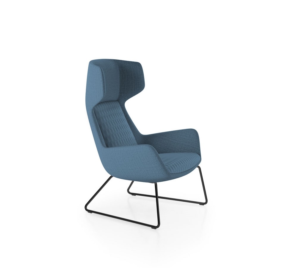 Estructura del cuerpo en metal, moldeado en poliuretano espumado en frío. Tiras de madera por debajo y por encima de la carcasa y en la parte trasera para grapar la tela. Asiento con inserto de madera, totalmente moldeado en poliuretano espumado en frío.