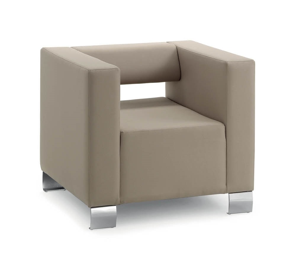 Sillón cuadrado con patas de metal cromado. Disponible en diferentes colores. diseño llamativo y esencial.