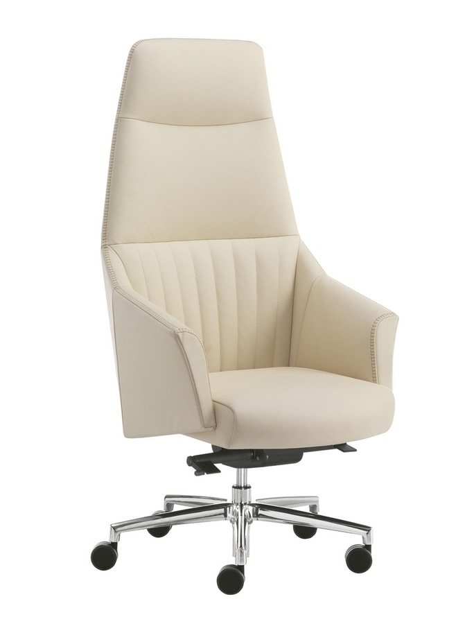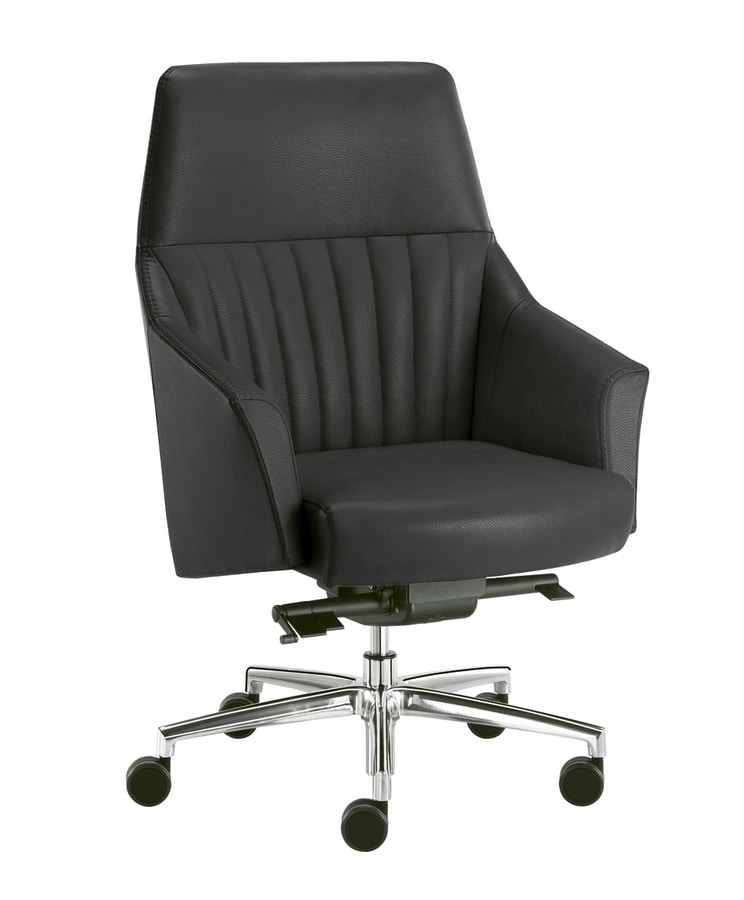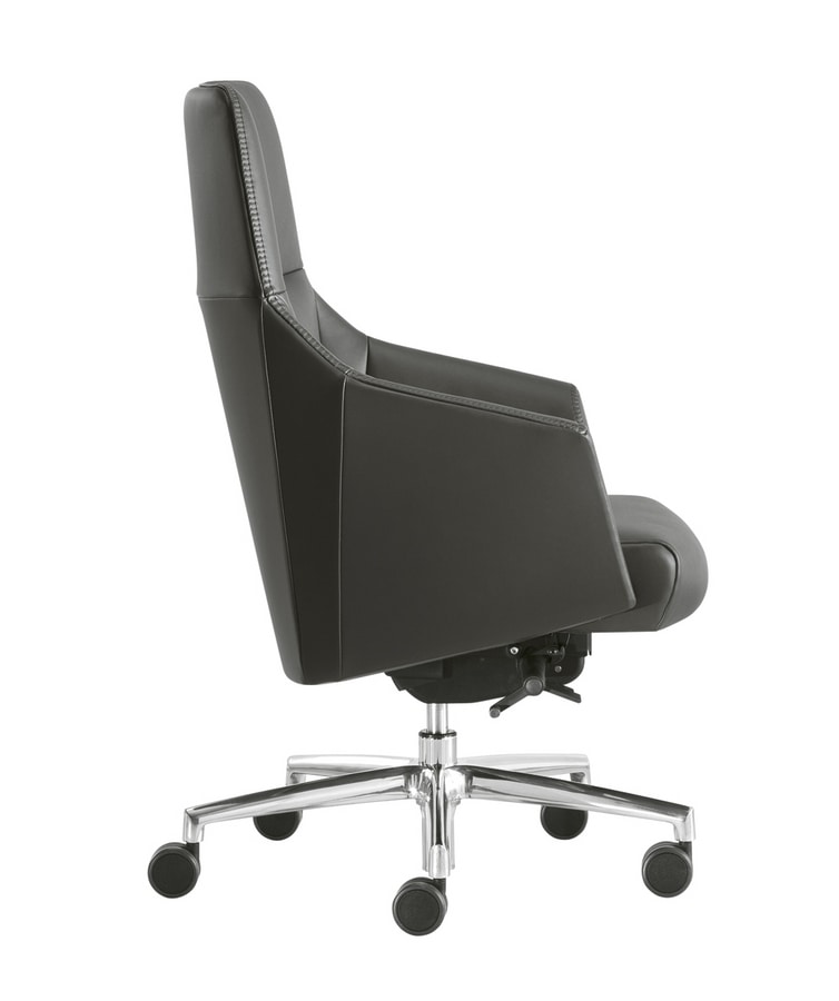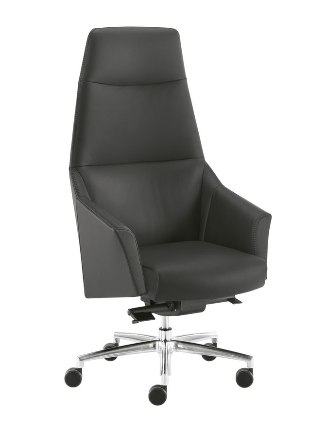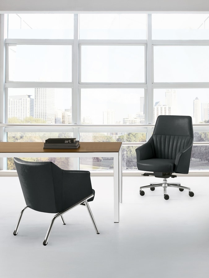 Serie ejecutiva tapizada de dos maneras, PLAIN (sin costuras frontales) o STRIP (con puntadas frontales). La serie está compuesta por: con sillón Synchro SLYD con reposacabezas o con respaldo alto, con mecanismo de inclinación CT1 con respaldo alto y bajo. Sillón de visita con respaldo alto y bajo con base de 4 patas con deslizadores delanteros y ruedas traseras. Silla pequeña para visitantes con base de 4 patas o base en voladizo o giratoria. El acabado de la base de aluminio es negro (N) o pulido (LU) o blanco (BI), mientras que los marcos para los visitantes tienen acabado en negro (N) o cromo (CR) o blanco (BI).