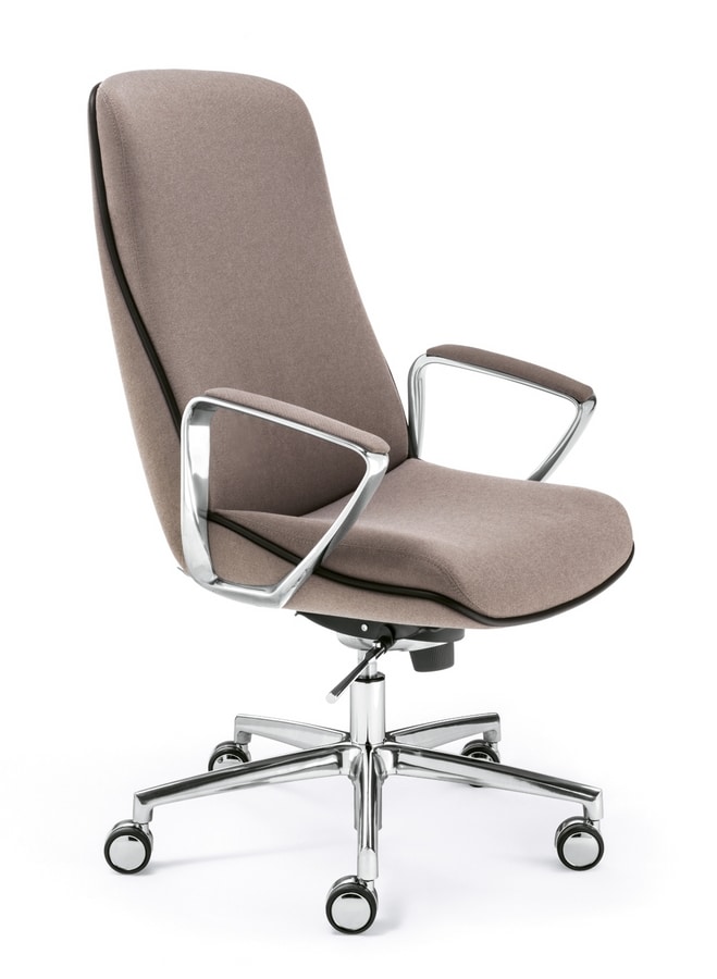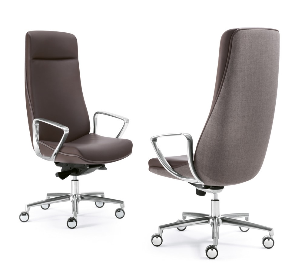 Sillón ejecutivo con reposacabezas, respaldo alto o medio. Mecanismos: Synchro SY109 (autoajustable) con traslación de asiento (op. SLYJ) y A19 oscilante central. Los huéspedes solo giran, con respaldo alto o medio (cuerpo completo), con la base "Araña" o base con 5 radios o base plana en acero inoxidable (solo con respaldo medio) combinada con el retorno automático "Torna" (no ajustable en altura) . Apoyabrazos y bases en aluminio pulido (LU) o negro pintado (N).