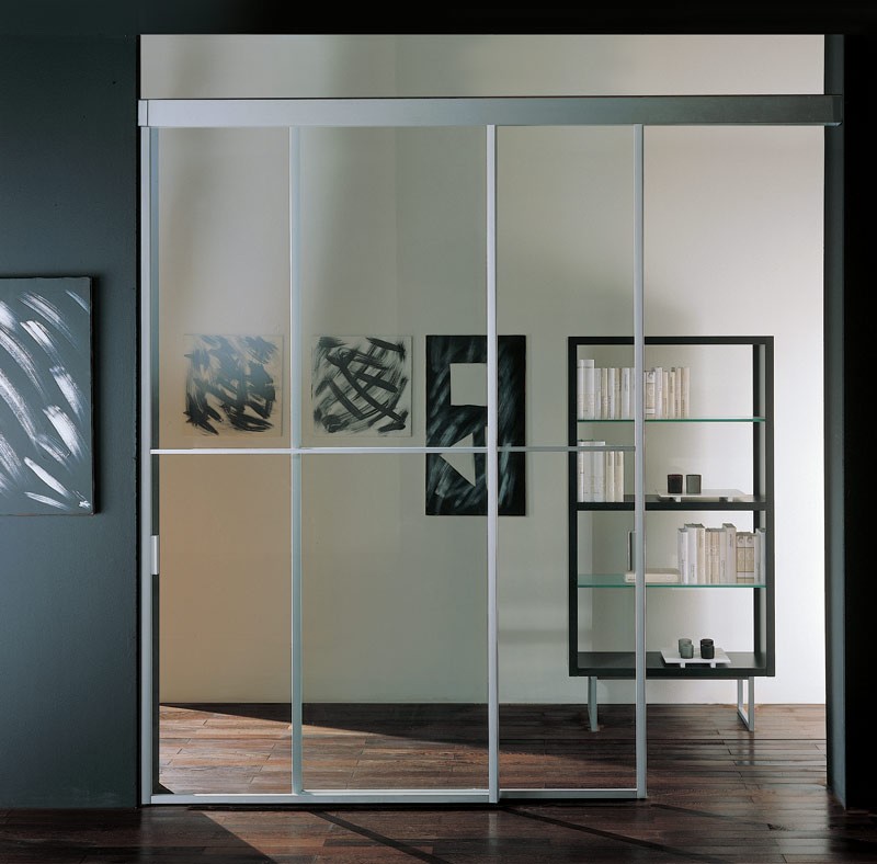 Solicitar precios Productos similaresCompleta aluminio y vidrio acabado sistema de deslizamiento de las puertas. Disponible por encargo en la pared. Techo o suspensión de la versión con el lado de anclaje, especialmente adecuado para los actuales falsos techos o techos muy altos. Gracias a la gran posibilidad de ajustar la barra de este sistema es adecuado para cualquier tipo de pared y el techo. Versiones en suspensión se realiza sólo con Maxi autoportante bar con doble carril, que permite un ajuste de 30 mm de altura de la puerta de. Versiones de paredes y techos están realizados con luz múltiples carriles de deslizamiento con el perfil de la cubierta o la versión maxi-bar con 1 ó 2 carriles de deslizamiento. Puerta con perfil de aluminio 35x35mm, disponible con el centro de la barra transversal o no, y siempre con doble asa. Para las soluciones de realización diferente de consultar la lista de precios.