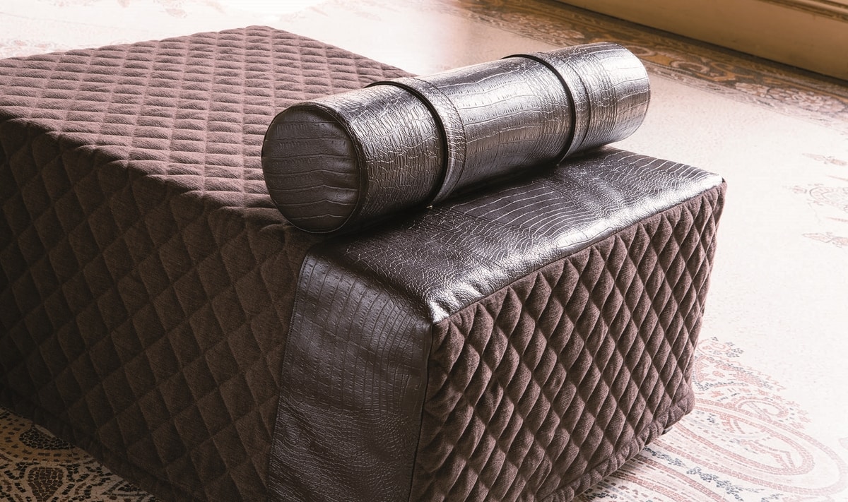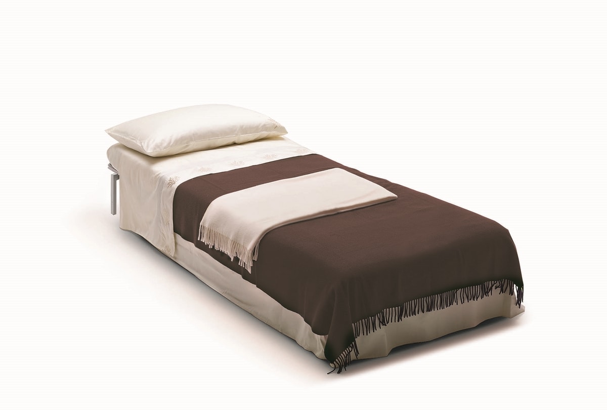Oscar se distingue por llamar el estilo art-deco y por la particular tela acolchada, que cubre el puf. El práctico mecanismo con abertura frontal y el plegado del colchón de espuma de alta resiliencia de 11 cm de alto, evita que se sienta en el lado del colchón.