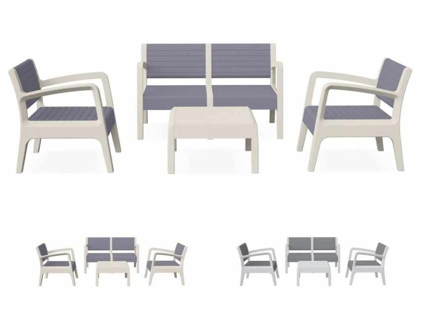 Comparado con todas las salas de estar en resina sintética, que luego de una temporada se dañan y se tiran, nuestro juego de sala de estar se caracteriza por su calidad superior (hecho en España) y está hecho para no perder color mientras permanece al aire libre. El material sintético (polipropileno) de esta sala de estar al aire libre también es muy hermoso a la vista y al tacto, no comparable con otros vistos en cuanto a calidad de materiales y estética.