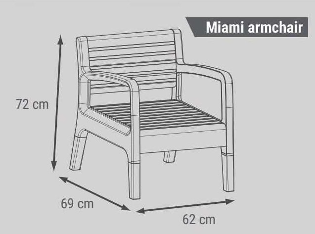 Sillón de medida 62 x 69 x 72 cm (ancho, profundidad, altura del respaldo)