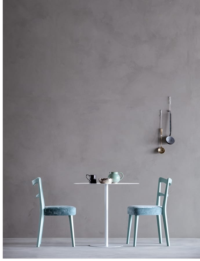 Este asiento con su parte posterior con formas suaves y decorativas recuerda la atmósfera de los típicos bares y restaurantes italianos del siglo XX. Un diseño con una sensación especial que se puede volver aún más único a través de una amplia gama de colores posibles, también en degradados del mismo color de acabado de laca, así como en todo tipo de tapicería.