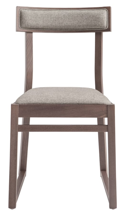Silla de trineo con marco de madera. Tapizado - piel sintética - tela - terciopelo. Patas en madera barnizada estándar - anilina - laqueada