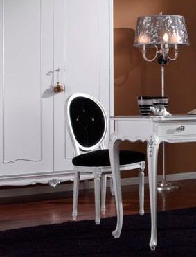 Silla de estilo Luis XVI pintado de blanco . Asiento y respaldo . Abotonado detrás con Swarovski botones.