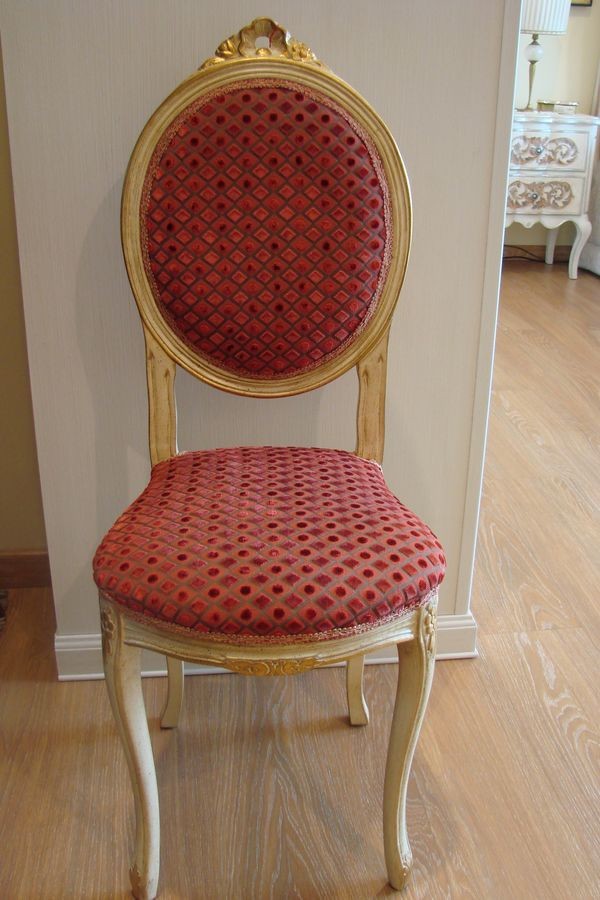 Silla Luis XV, laca y recubierto con detalles en oro.