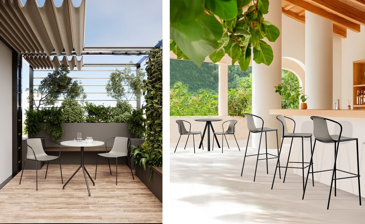 Solicitar precios Productos similaresApilable y resistente para las necesidades diarias de los espacios contract: Kasia añade un toque de elegancia informal a cualquier entorno comercial. La colección Kasia, con su esbelto perfil, realza con delicadeza la idea de confort y hospitalidad, incluso para ambientes exteriores refinados. La estructura metálica, tratada para resistir a los agentes atmosféricos, se combina con el acabado en tecnopolímero para realzar el confort y la posibilidad de personalización para los proyectos contract más exigentes. Apilable y resistente para las necesidades diarias de bares, restaurantes y hoteles, Kasia añade un toque de elegancia informal a cualquier entorno comercial. Kasia Wrap conserva su elegante estructura y sus delicadas formas, enriquecidas por hábiles acolchados y tapizados, que le confieren un atractivo personalizable en infinitas combinaciones. Kasia Wrap es polivalente gracias a sus diferentes colores, materiales y combinaciones funcionales.