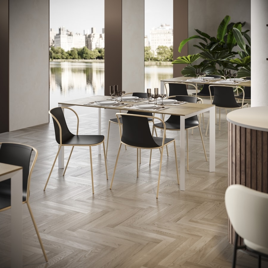 Silla con reposabrazos de tecnopolímero y estructura metálica de cuatro patas