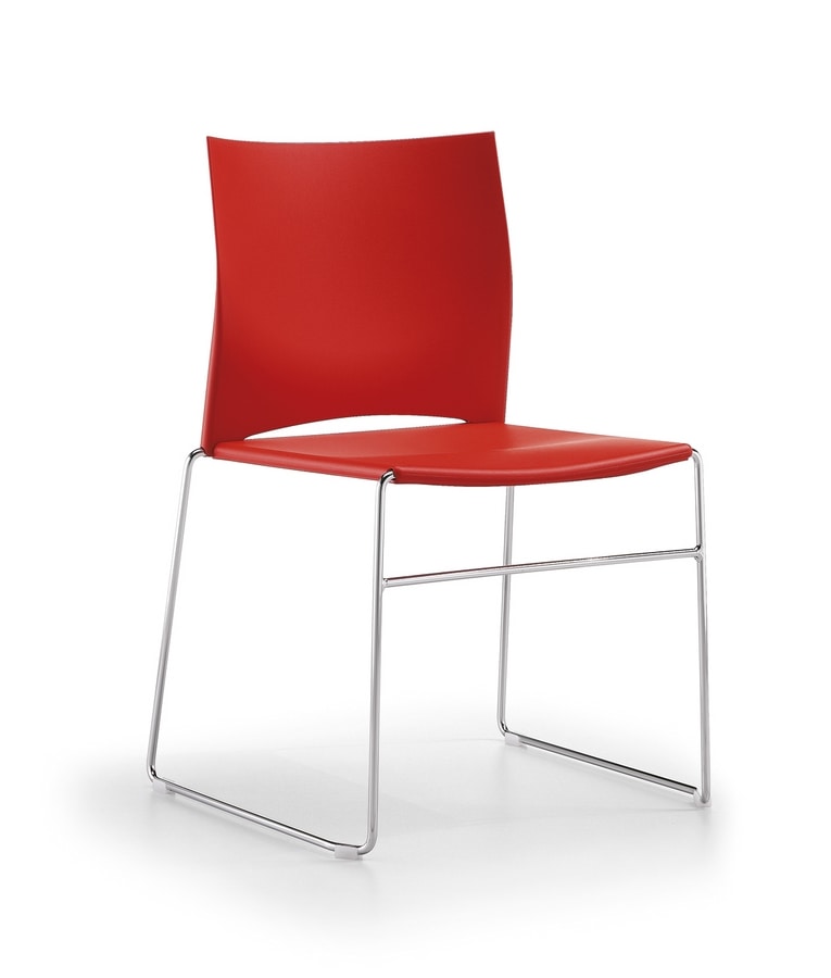 Silla ergonómica y funcional. Silla apilable, con respaldo y asiento de plástico disponible en diferentes colores.