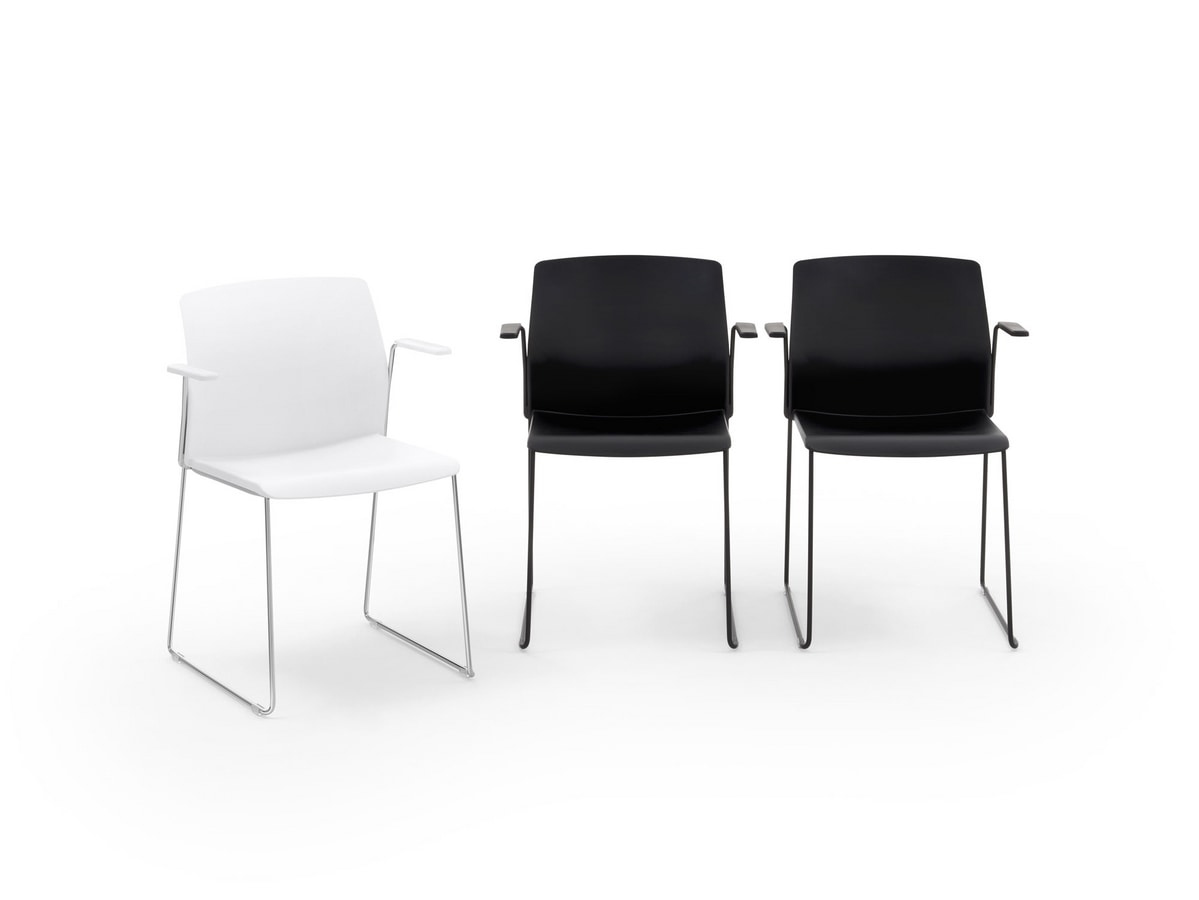 Solicitar precios Productos similaresUna sala polivalente en la que se celebren reuniones, talleres, convenciones y conferencias debe acoger a los participantes del evento en espacios dedicados a este fin; en ellos deben estar las sillas para los ponentes y las sillas con tableta basculante y amovible para los participantes del evento, que deben aportar al entorno ergonomía, comodidad y funcionalidad. Las sillas basculantes Ocean de Leyform han sido diseñadas para este fin; son ignífugas, ligeras y fáciles de desplazar, pueden apilarse hasta 40 alturas, pueden combinar 7 acabados para el armazón en acero trefilado Ø 11 mm (pintado blanco, gris, negro, rojo, azul, verde, arena y cromado) con 7 colores para el monocasco de plástico (blanco, gris, antracita, rojo, azul, verde, arena), disponen de una mesa plegable donde tomar notas o colocar un ordenador portátil o un cuaderno y, disponen de una tableta plegable y amovible donde tomar notas o colocar un ordenador portátil o un cuaderno y, gracias a la forma especial del monocasco, garantizan la ergonomía y la máxima comodidad al sentarse, incluso en conferencias o seminarios de larga duración. Además, la silla de escritorio plegable Ocean está disponible con un suave panel de asiento acolchado para una mayor comodidad al sentarse, que puede tapizarse con tela o piel sintética ignífuga homologada en la clase 1IM. El monocasco de plástico de la silla Ocean está fabricado en plástico reciclado y reciclable con un diseño ergonómico, geométricamente mínimo y al mismo tiempo modular, ya que está unido al armazón metálico sin tornillos para que pueda separarse fácilmente de él al final de su ciclo de vida.