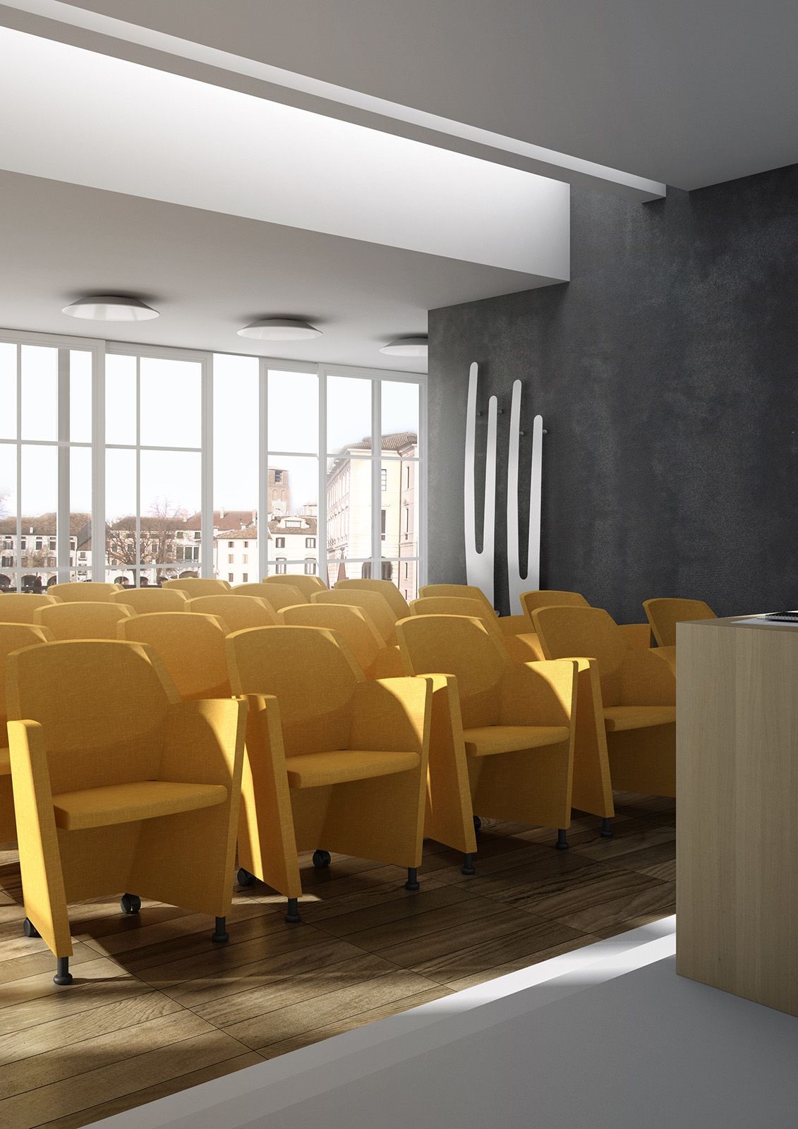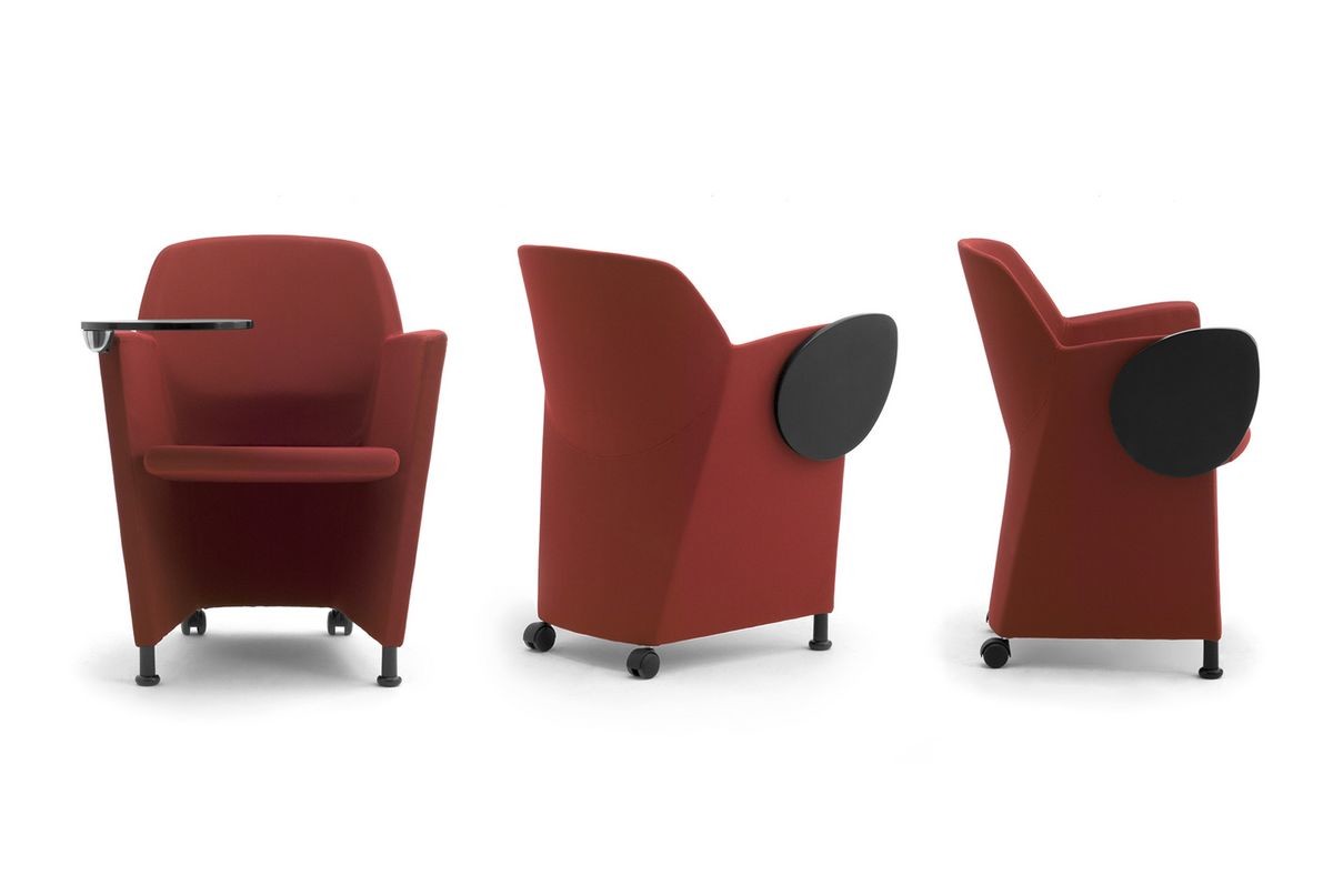 Viviana, un sillón bañera muy bien diseñado para salas de espera, salas de conferencias, salas de congresos, etc Se trata de una estructura metálica interior con tapizado con espuma ignífuga inyectada en frío: el asiento abatible permite que las sillas para anidar horizontal, como una opción, es posible obtener y anti-pánico escritura / laptop tablet de ABS resistente al impacto negros.