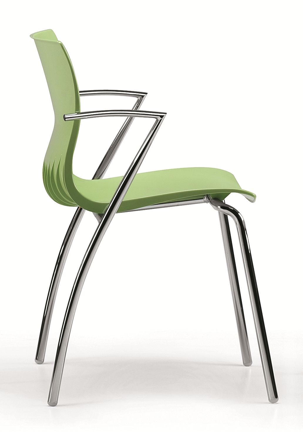 Silla apilable con monocarcasa en nylon resistente al fuego y disponible en varios colores.