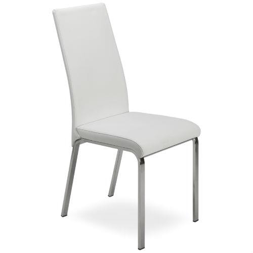 Silla con estructura de metal, asiento y respaldo tapizados en cuero genuino.
